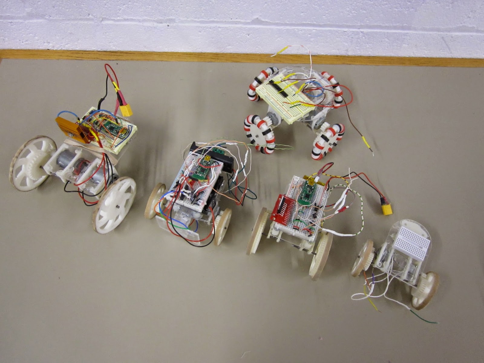Unfortunately the bumper carts did have one minor issue--for reasons not yet determined, the cart couldn't actually move under its own weight with the full circuit hooked up, but could move when the batteries were connected directly to the motor terminals instead. I will have to do some science to it, but I bet putting a nicer battery (2 or 3 cell lithium polymers) will fix the problem.